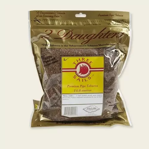 Daughters & Ryan's Three Sails is a light bodied, British style Virginia blend. The fine cut allows you to pack more firmly. This incredibly sweet flue-cured tobacco has citrus and hay-like notes - smooth and flavorful.