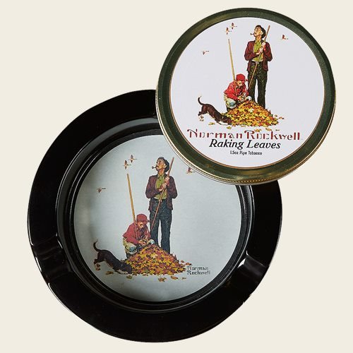 The Norman Rockwell Raking Leaves Kit is an homage to one of Rockwell's homespun masterpieces. In this set, you'll receive a tin of Raking Leaves tobacco which is made to evoke the feelings of autumn with warm spices and a touch of sweetness. The tin has a collectible label that matches the artwork printed on the included black ashtray. These limited edition sets are made for any fan of Norman Rockwell's art. If that includes you, you should add this to your collection of tobacciana.