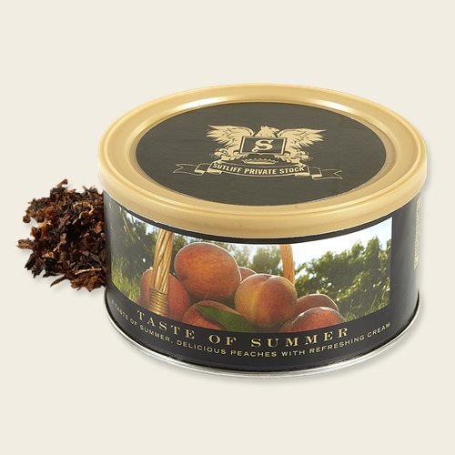 Sutliff Private Stock Taste of Summer begins as a classic aromatic base blend of bright Virginia, mellow White Burley and soft, steamed black Cavendish to which the rich essence of fresh peaches is added for one of the most pleasant aromas in pipe tobacco. Take the edge off the day with this peach pipe tobacco, a Taste of Summer.