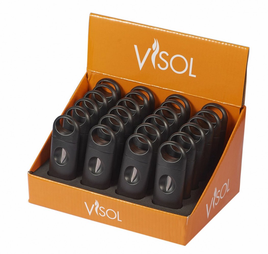 Featuring a wedge style cigar cutter, displayed in neat compact rows and a stylish packaging, the Chrys 24 pack makes an excellent addtion to your retail collection. Featuring a sturdy plastic casing and razor sharp cutting mechanism, this cutter is able to easily cut up to a 60 ring gauge cigar with relative ease and fits into the palm of your hand while doing so.