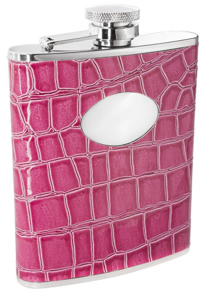 Blush Pink Crocodile Leather 6 oz. Stainless Steel Flask - 6 oz.