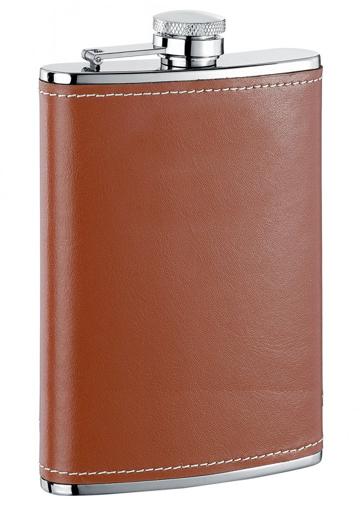 Bobcat Brown Leather Stainless Steel Flask - 8 oz.