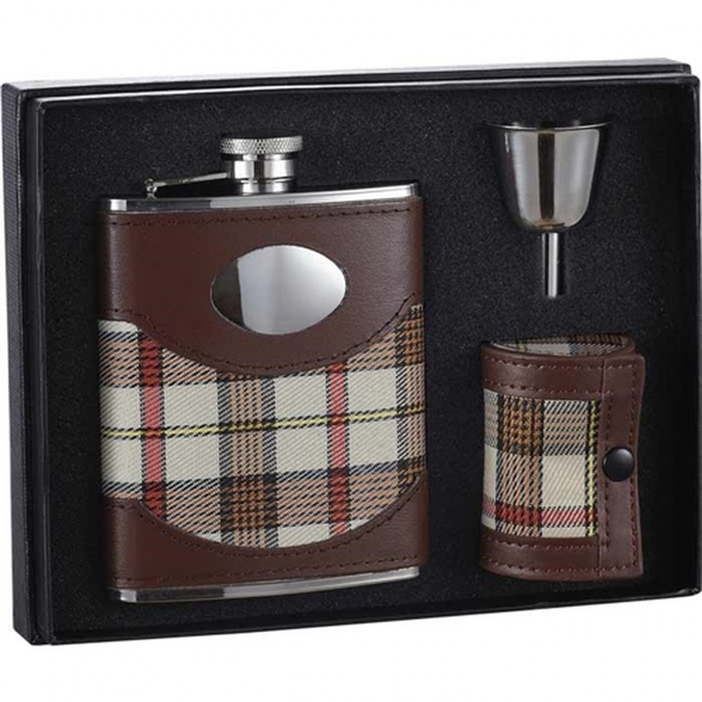 Braw 6 oz. Leather & Plaid Stainless Steel Flask Gift Set
